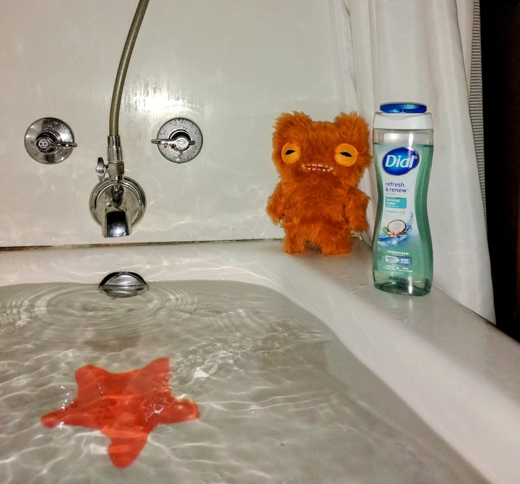 Once at my new home, things took a weird turn. The girl put her nose to my head and said I smelt like store, and asked if I’d like to clean up. I said sure, yes, I had never bathed before and that sounded wonderful. So she showed me into the bathroom, put me next to the tub, and filled it with water. At first I felt self-conscious without my shirt, but I got over it quickly, and then after the bath I felt so fluffy and free.