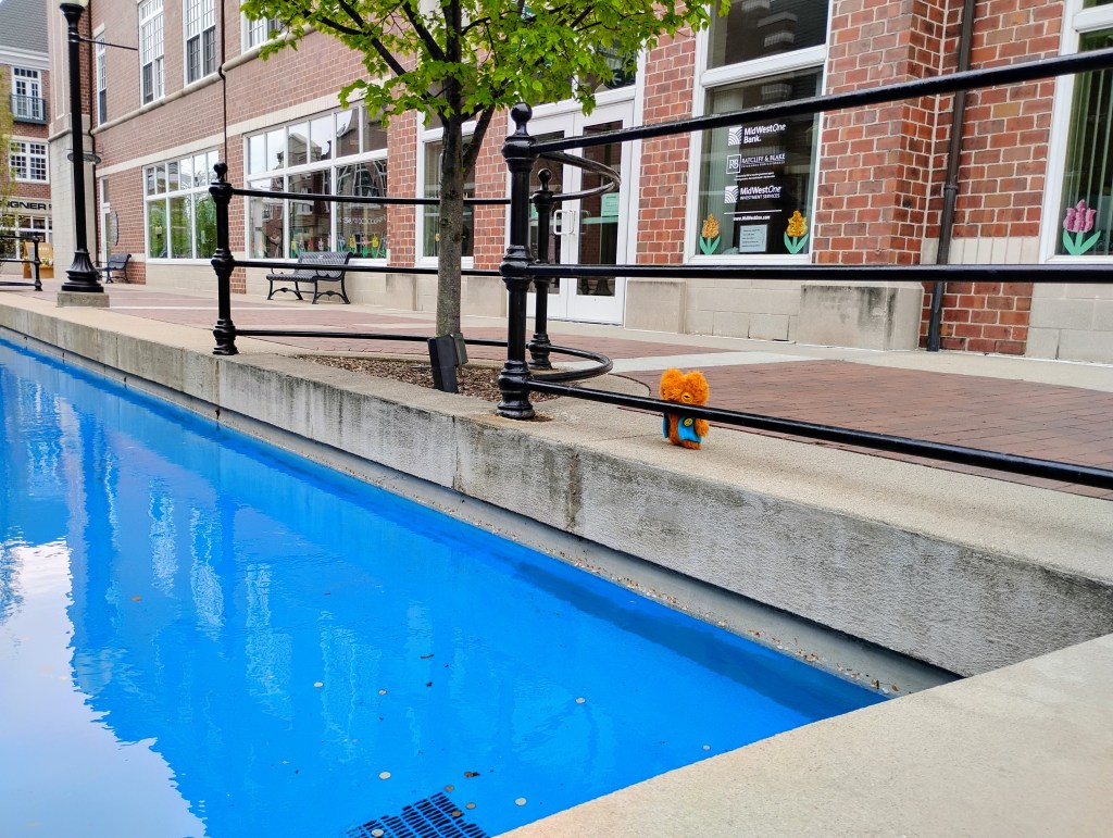 We parked near the downtown and didn’t walk very far before we saw this canal that had some coins at the bottom. The girl explained that people throw coins into decorative waterways like this sometimes and make a wish. She was going to get me a penny so I could make a wish, but she got so excited about taking my picture that ultimately she forgot about the penny, so I just made a wish without one.