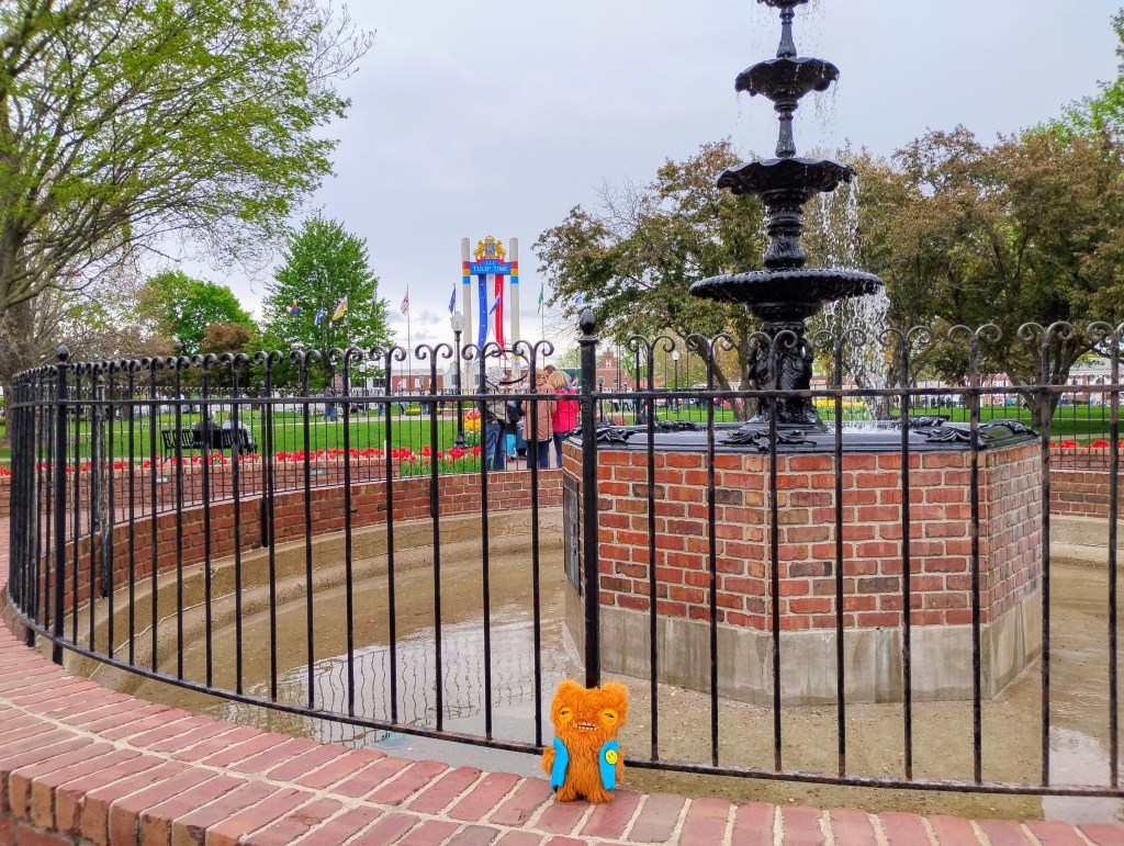 This fountain was in the park too, and behind it you can see the huge Tulip Time tower.