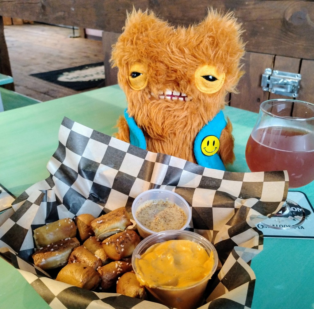 The girl wanted to visit some shops and then see the craft market, which was so big that it exhausted us all. We didn’t buy anything, but we did get wet and hungry, so we stopped at Full Bloom Brewhouse in Oskaloosa on our way home. We shared a basket of pretzel bites with a mustard so stingy, the girl made big eyes and said it burned her nose.