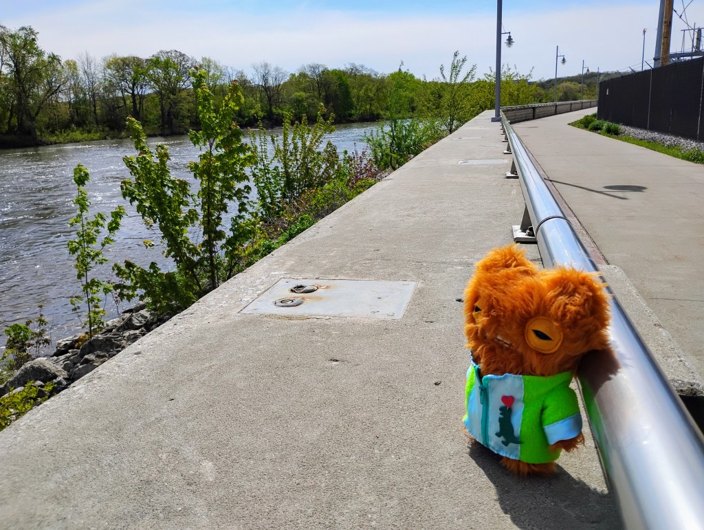 Then it was time for our walking adventure. Our first stop was the Iowa City Power Dam, which we walked right over on a bridge. The water was smooth as it came to the dam and fell over the falls, and then it was frothy and swirly and fun to watch on the other side.