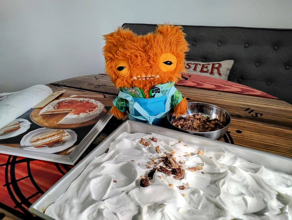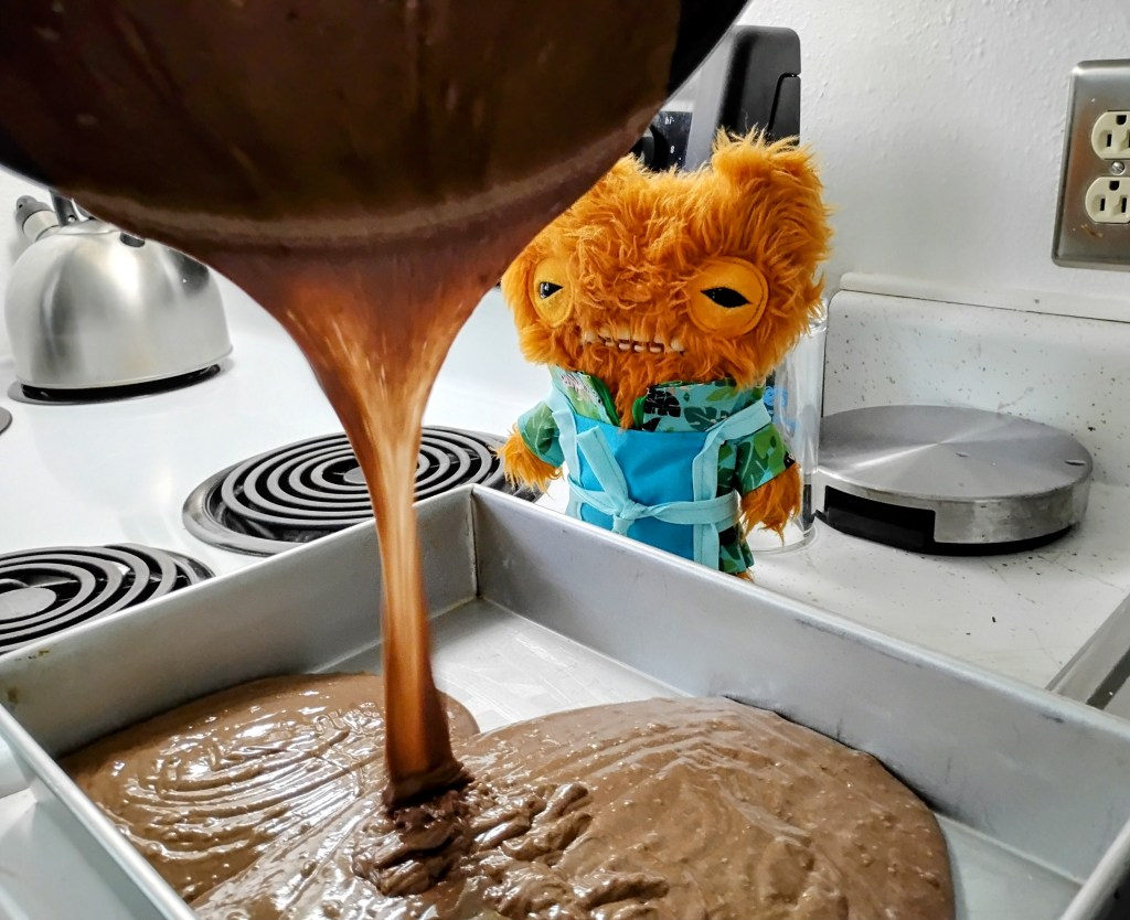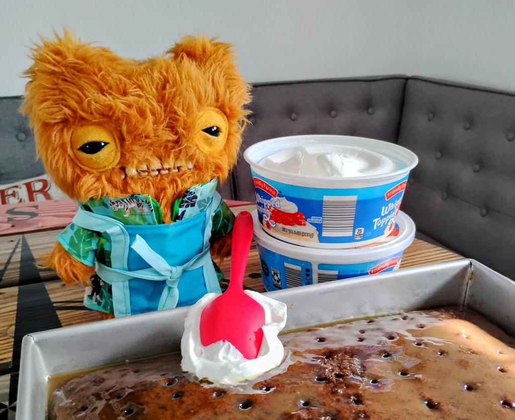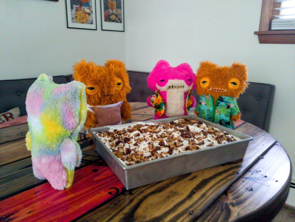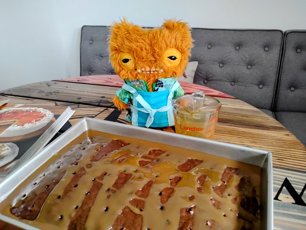 Sketch thought the poke cake was really good too. The caramel made the cake really moist and the Heath bars added a crunchy touch.