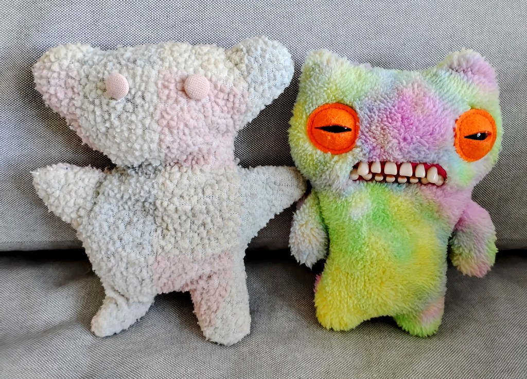 One of those guys is NewNew. The girl said her mom made NewNew out of her favorite blanket with buttons from her favorite jacket when she was like four years old. He’s stuffed with a cloth baby diaper.