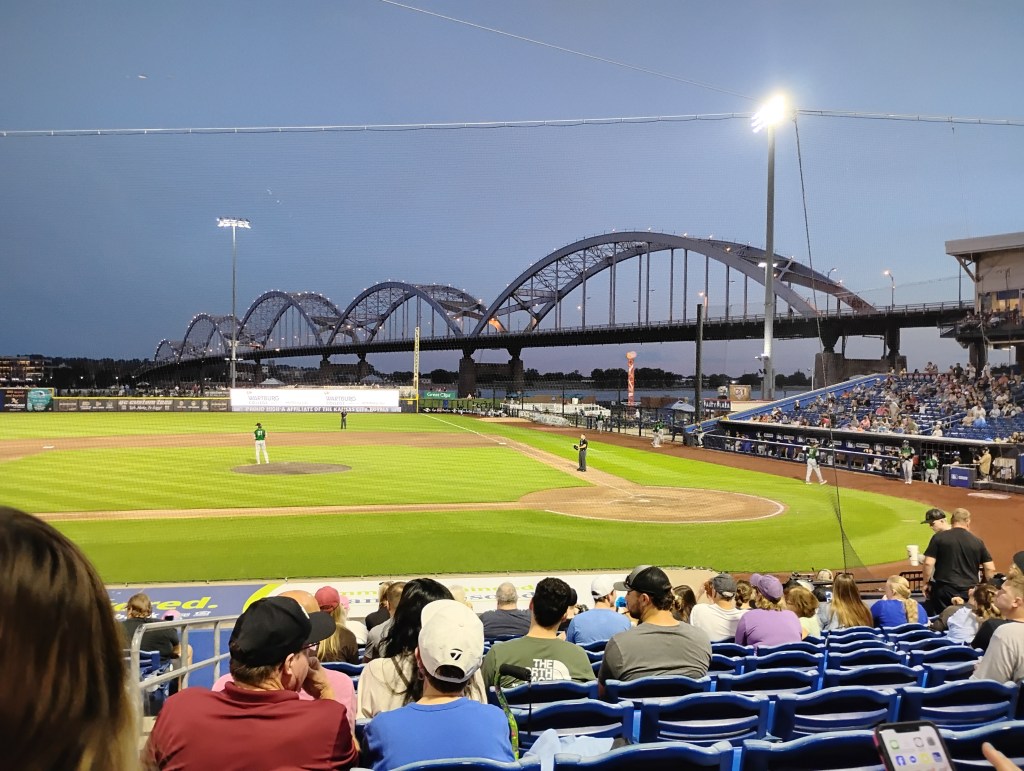 After that it was time for the ballgame, which was at Modern Woodman Park, a few miles down the river. The ballpark has views of a completely different bridge over the Mississippi, the Centennial.